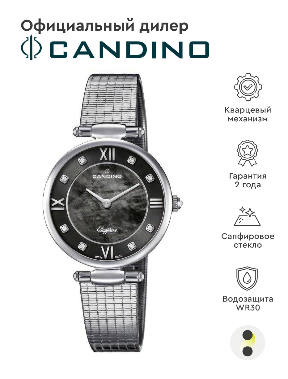 CANDINO C4666-2 женские швейцарские наручные часы с сапфировым стеклом и кристаллами