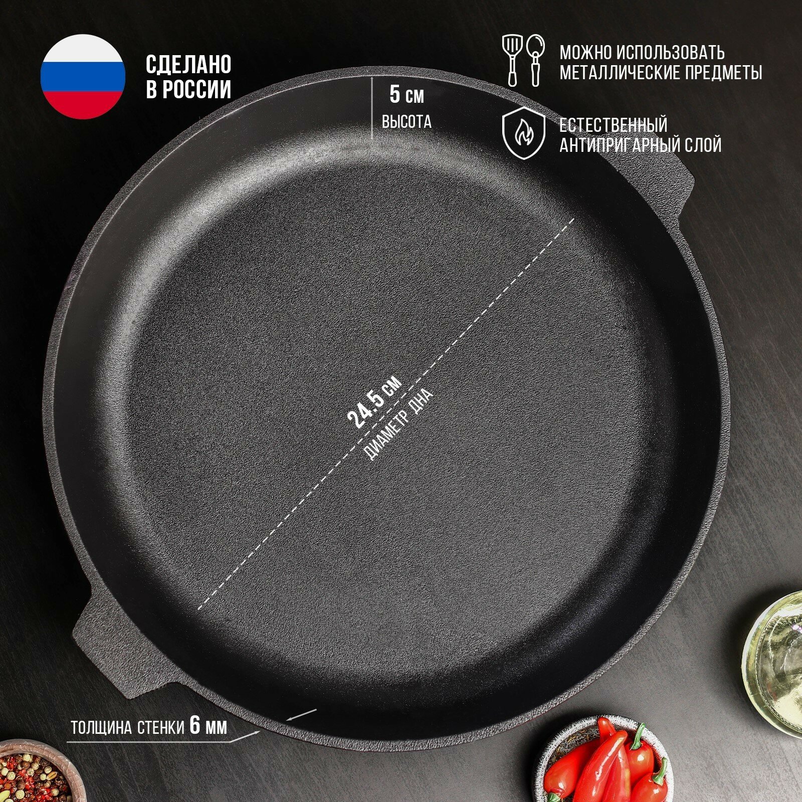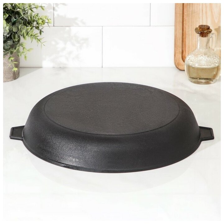 Сковорода литая чугунная d=32 см, h=5 см, с двумя ушками, индукция интересное: