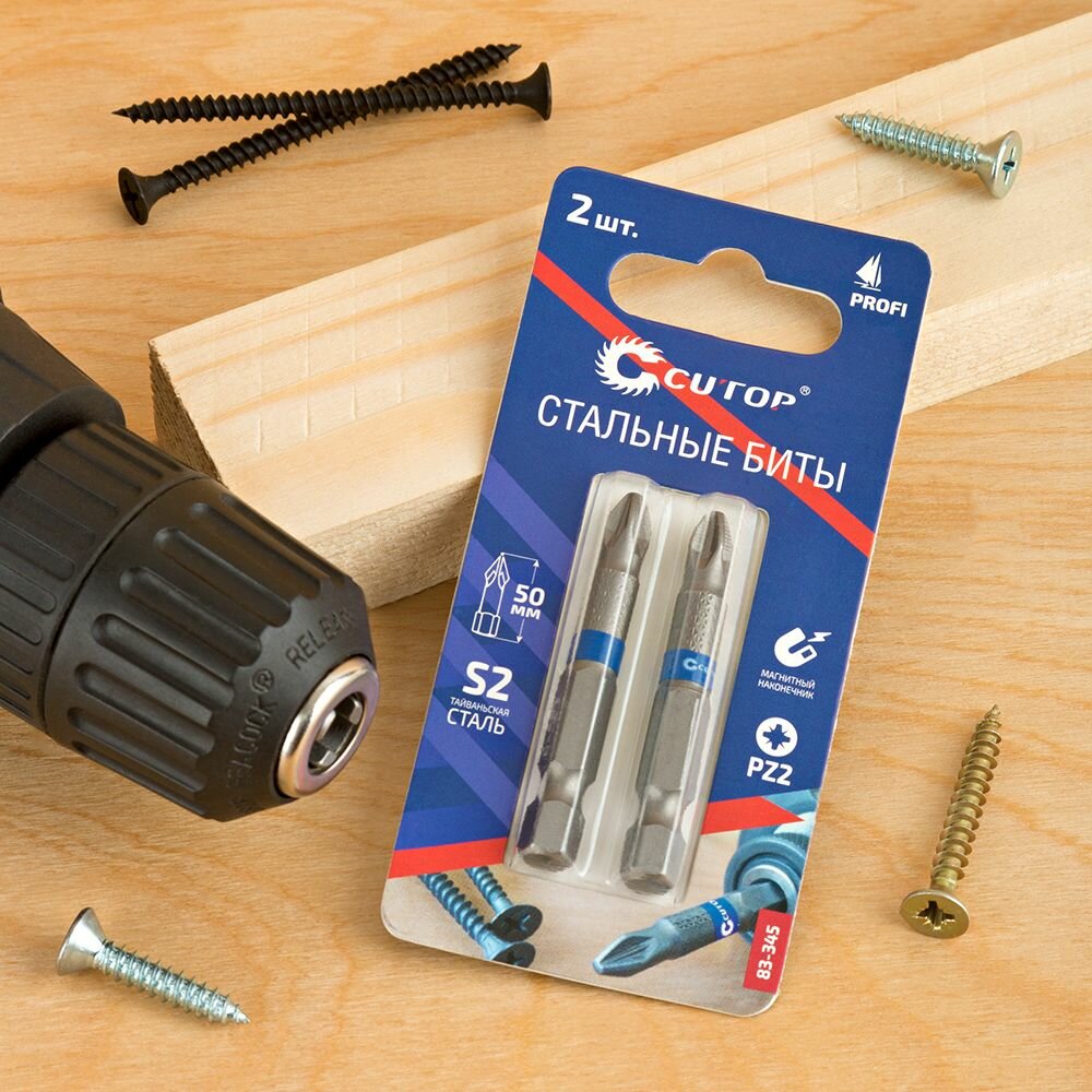 Биты стальные, 2 шт., CUTOP Profi, PZ2, 50 мм 83-345 интересное: