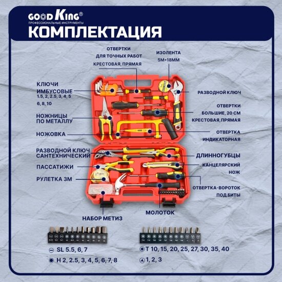 Купить Набор инструментов GOODKING, 47 предметов, для дома, в кейсе