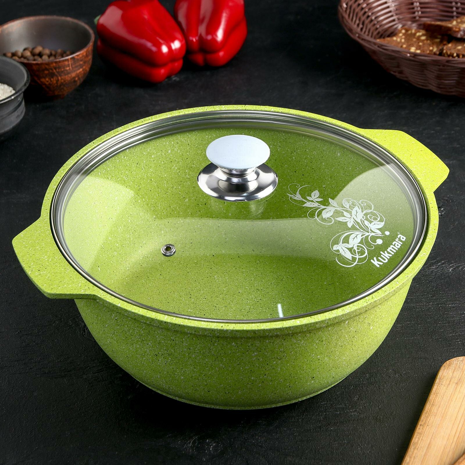 KUKMARA Жаровня Trendy style, 4 л, стеклянная крышка, антипригарное покрытие, цвет зелёный