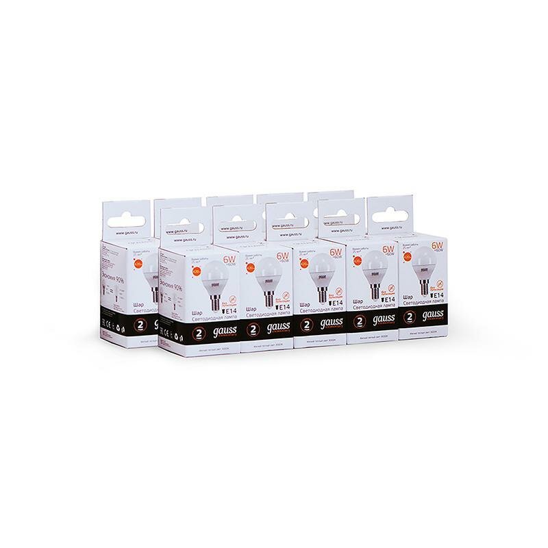GAUSS 53116 Светодиодная лампа LED Elementary Шар 6W E14 420lm 3000K 1/10/50 0