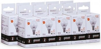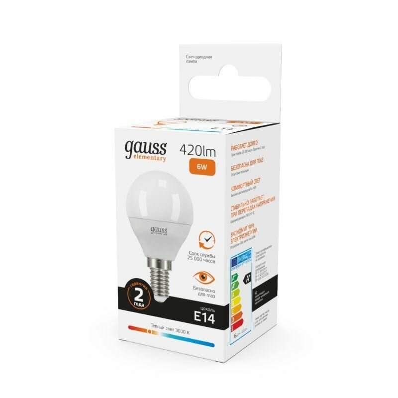 лампочка Gauss Elementary шар 6W E14 3000K 53116 интересное: