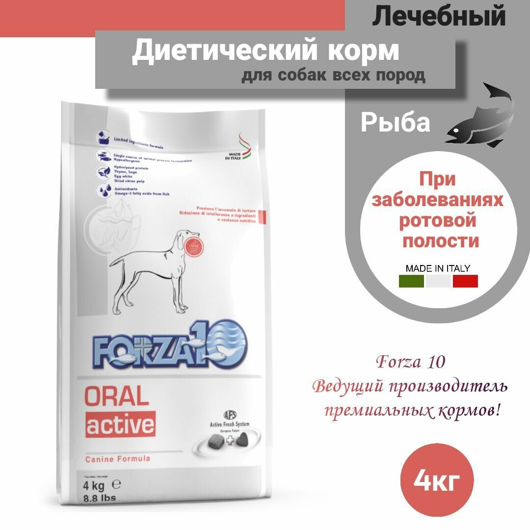 Сухой корм Forza10 ACTIVE ORAL al Pesce, для взрослых собак при заболеваниях ротовой полости, с рыбой, 4кг
