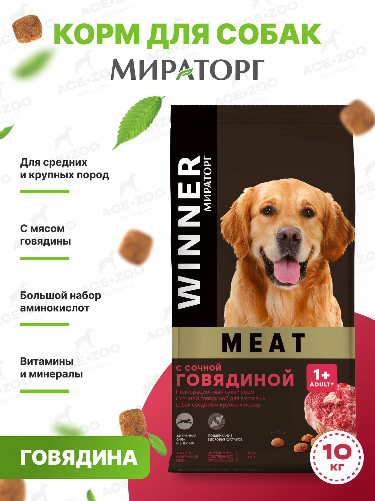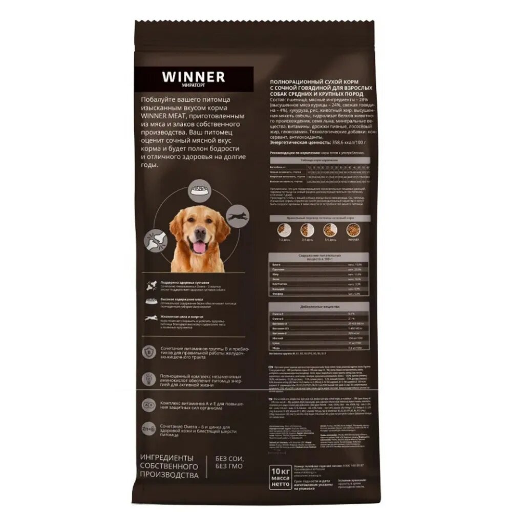Winner сухой корм MEAT для средних и крупных пород собак с говядиной, 10 кг