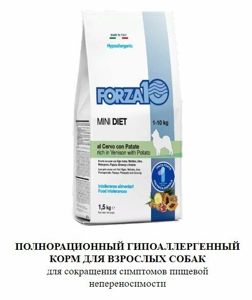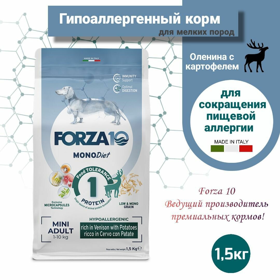 FORZA10 DOG MINI DIET монобелковый для взр собак мал пород при аллергии с олениной и картофелем 1,5 кг
