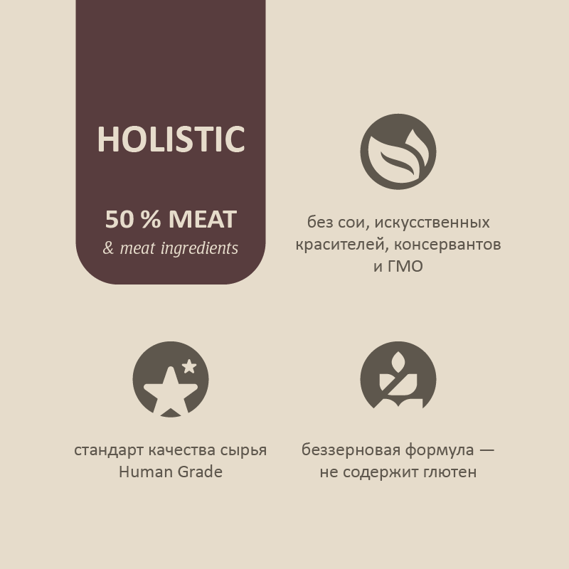 Решил перевести собаку на этот корм, потому как предыдущий не подошёл.Тоже был холистик и состав вроде неплохой, но собака после него ходила по большому слишком жидковато и цвет фикалий был серо-зеленый. На этом корме улучшеня появились сразу. Стул у собаки стал нормальным и по цвету и по форме. Собака породы французский бульдог. сам корм имеет приятный запах и собака ест с удовольствием.