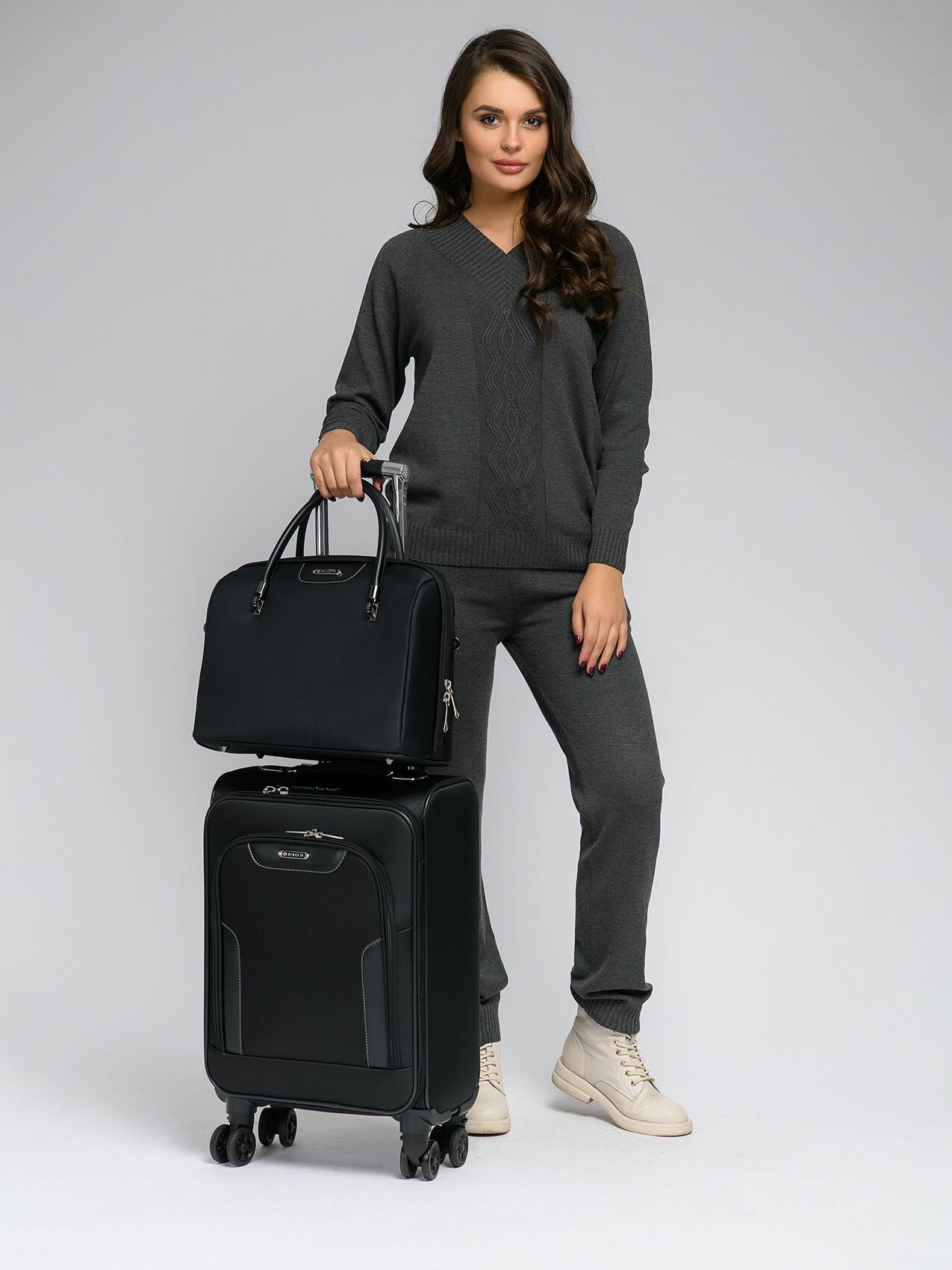 Дорожная сумка с ремнем на ручку чемодана Рион+ (RION+) / ручная кладь для самолета / саквояж , R240, Тканевая, 20 литров, черный-168