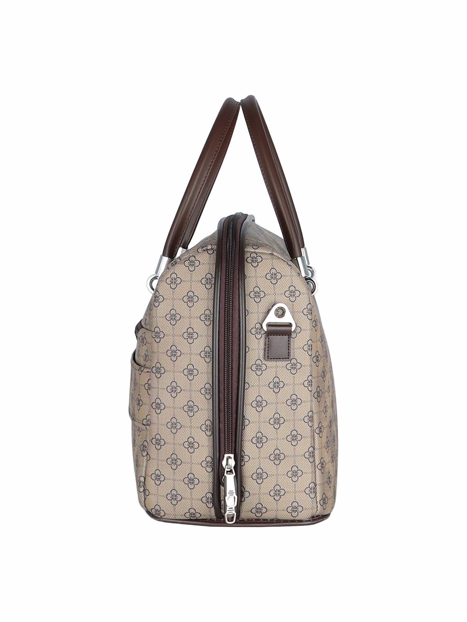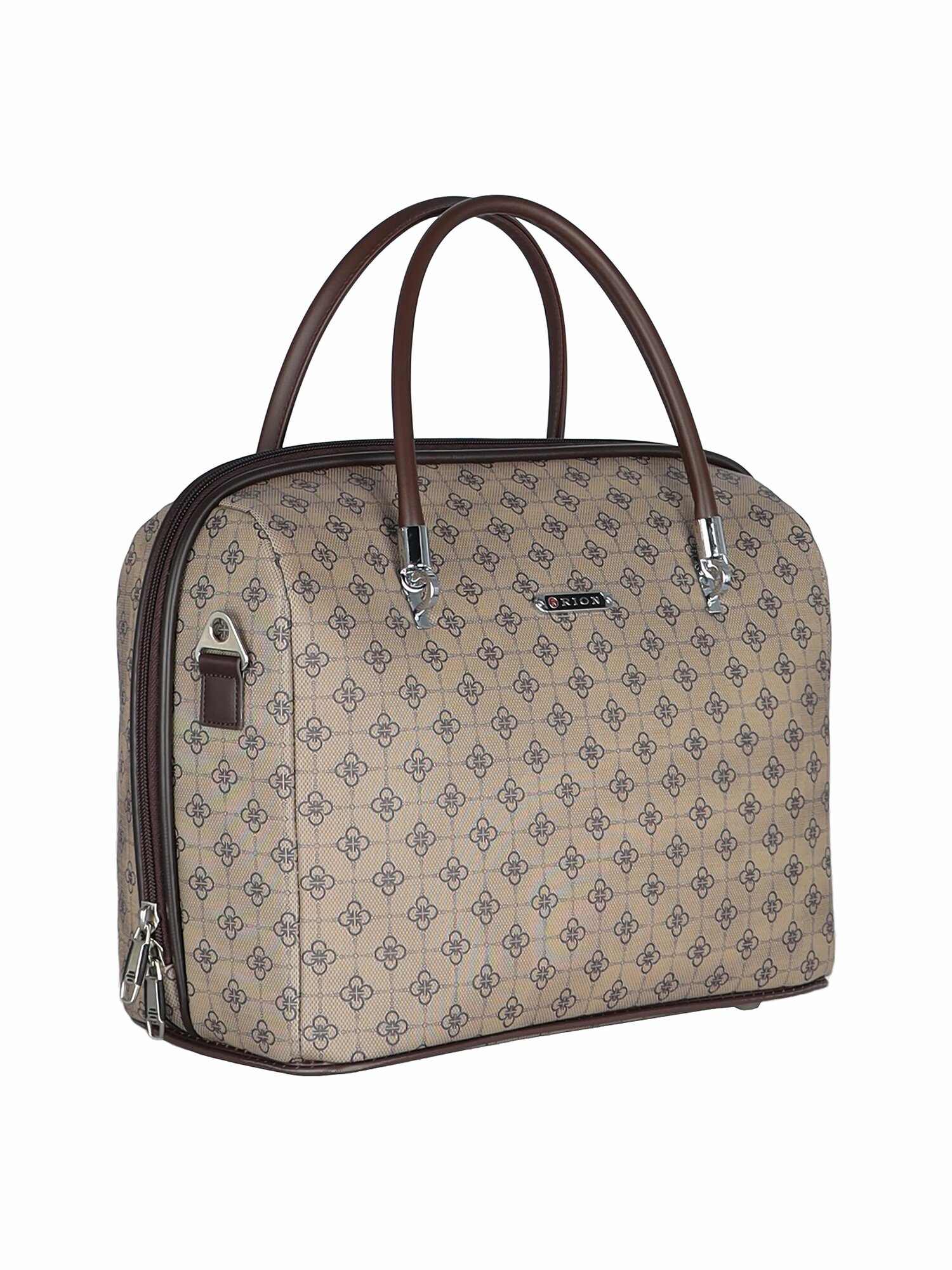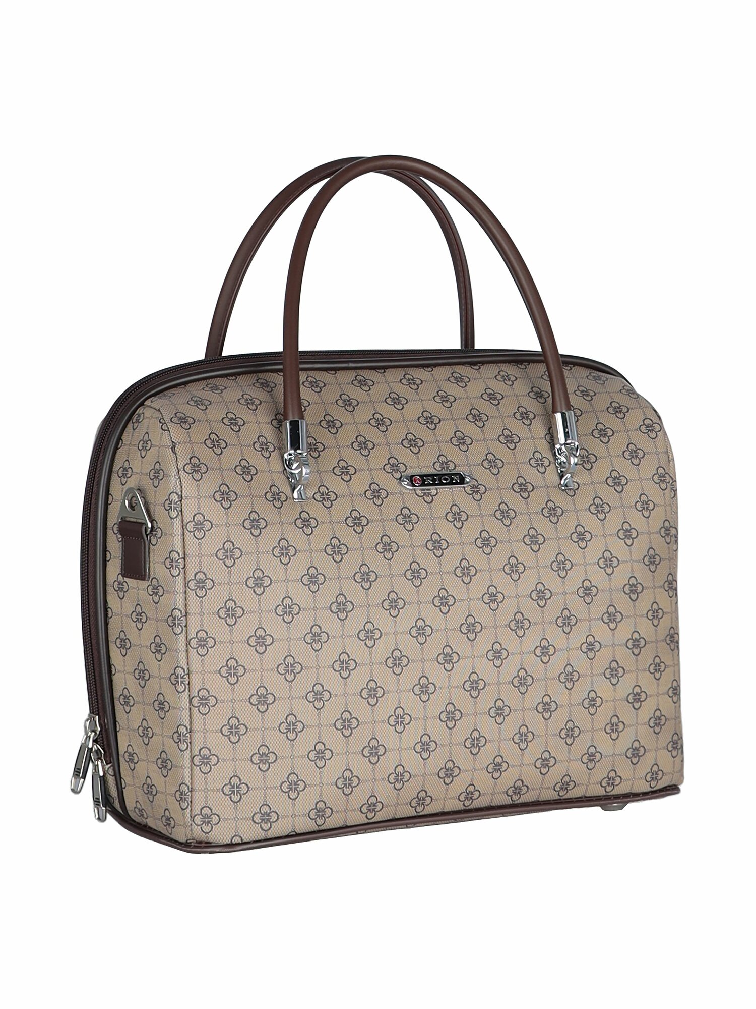 Дорожная сумка с ремнем на ручку чемодана Рион+ (RION+) / ручная кладь для самолета / саквояж , R240, Тканевая, 20 литров, коричневый-орнамент