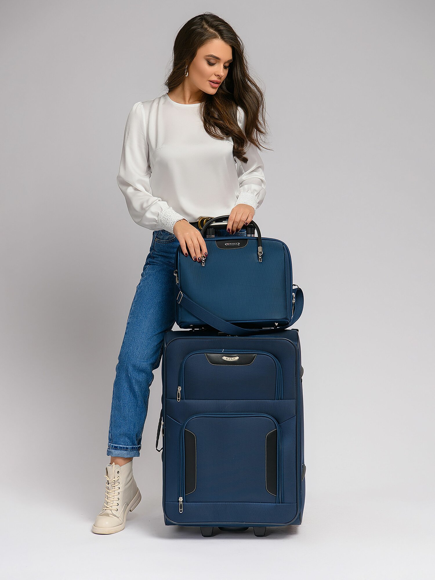 Купить Дорожная сумка-саквояж с ремнем на ручку чемодана Рион+ (RION+), ручная кладь, R240, Тканевая, 20 литров, синий