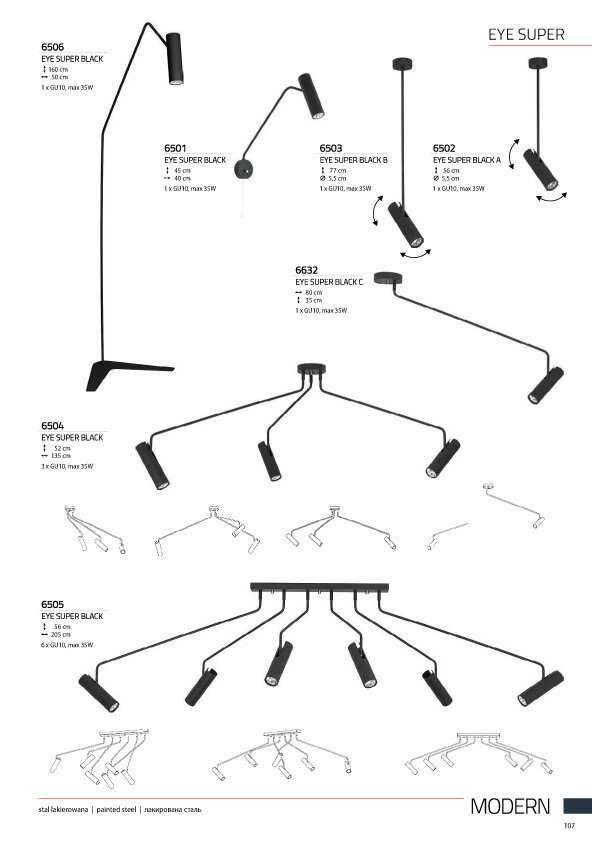 | Направление плафонов | поворотные |