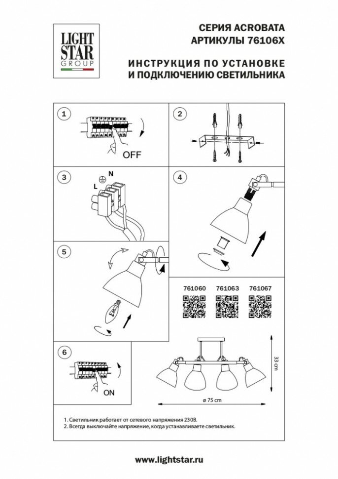 Ниже Вы можете прочитать отзывы на Потолочная люстра Lightstar Acrobata 761067, E14, 240Вт, кол-во ламп:6шт., Черный, ознакомится с подробными характеристиками, посмотреть интересные обзоры и фотографии на Потолочная люстра Lightstar Acrobata 761067, E14, 240Вт, кол-во ламп:6шт., Черный.