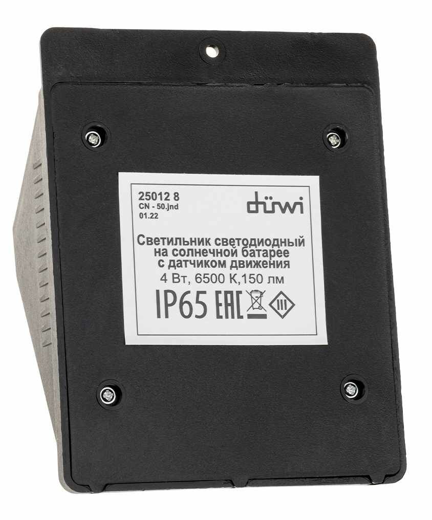 Светильник на солнечных батареях Duwi Solar LED 4Вт 6500К 150Лм IP65 с датчиком движения черный 25012 8