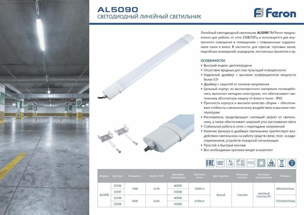 Ниже Вы можете прочитать отзывы на Светильник линейный светодиодный, Feron, AL5090, 36 Вт, 4000 К, IP65, белый свет, 32598, ознакомится с подробными характеристиками, посмотреть интересные обзоры и фотографии на Светильник линейный светодиодный, Feron, AL5090, 36 Вт, 4000 К, IP65, белый свет, 32598.