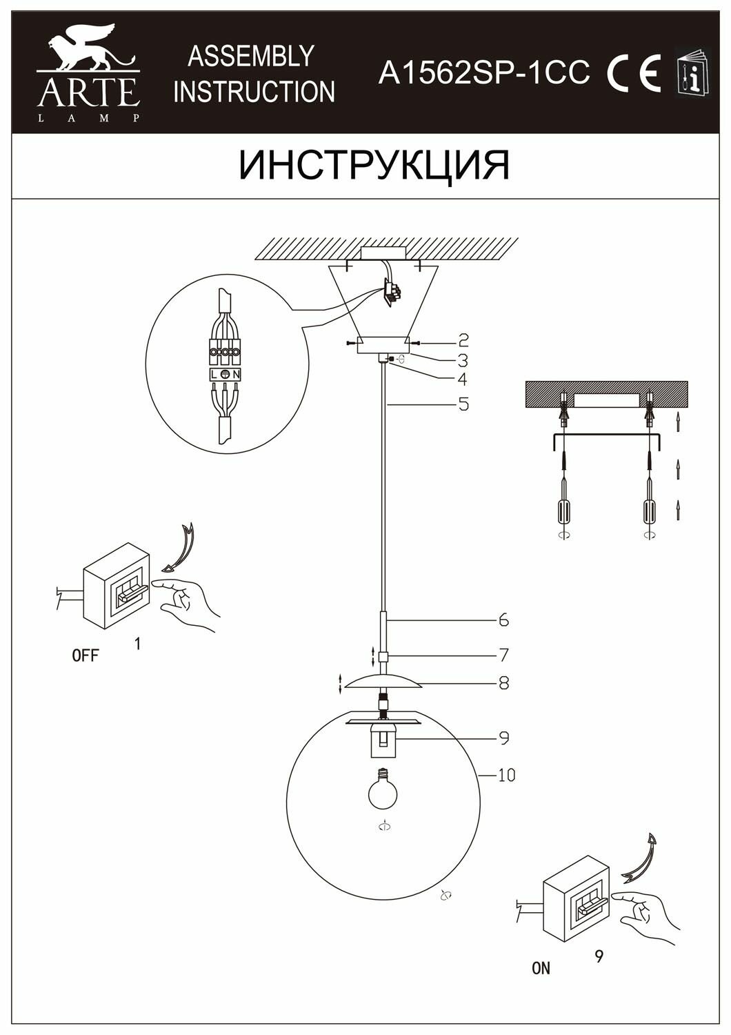 ARTE Lamp #ARTE LAMP A1562SP-1CC светильник подвесной
