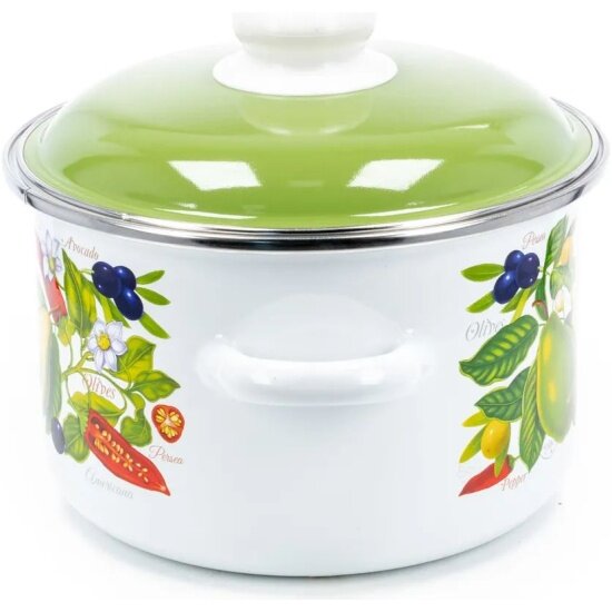 Кастрюля стальэмаль 4,0 л с рис. Авокадо цил. бел.с обод. (1) 6RD201M