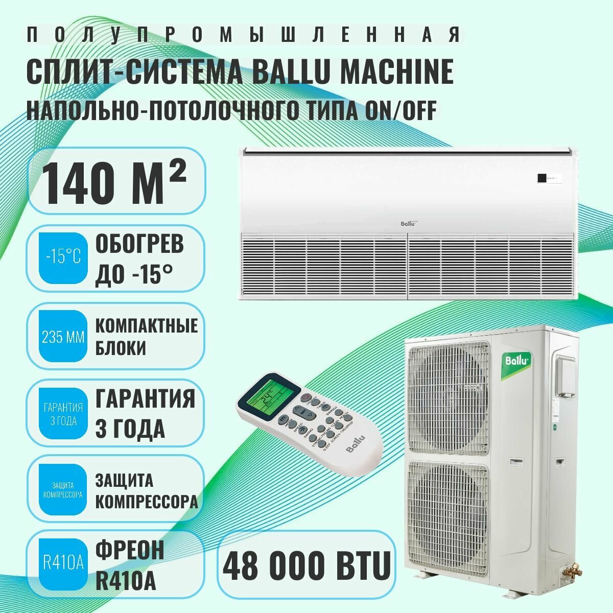 Напольно-потолочная сплит-система /напольно-потолочный кондиционер/ Ballu Machine BLC_CF-48HN1_21Y, комплект