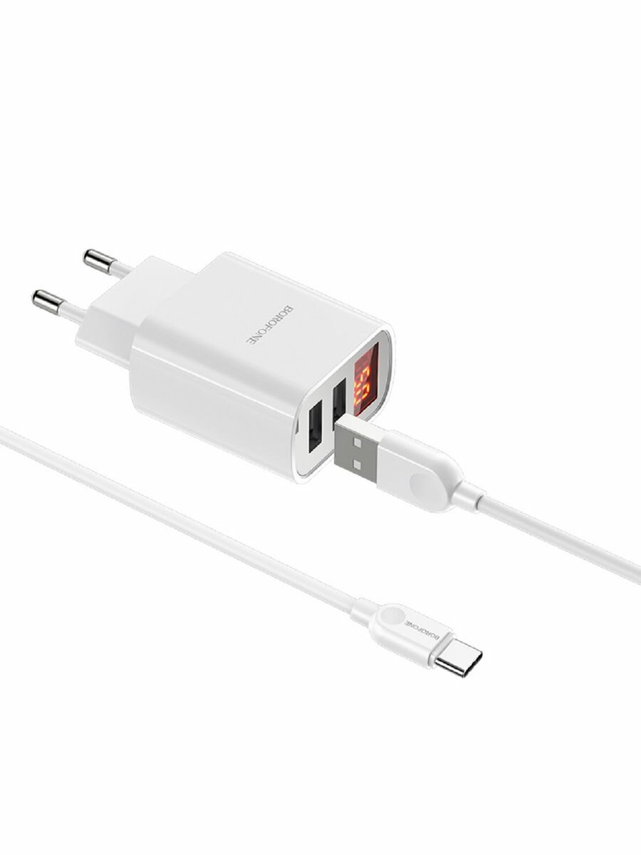 Borofone BA58A Mighty 2xUSB 2.4A + кабель USB Type-C 1.0m White