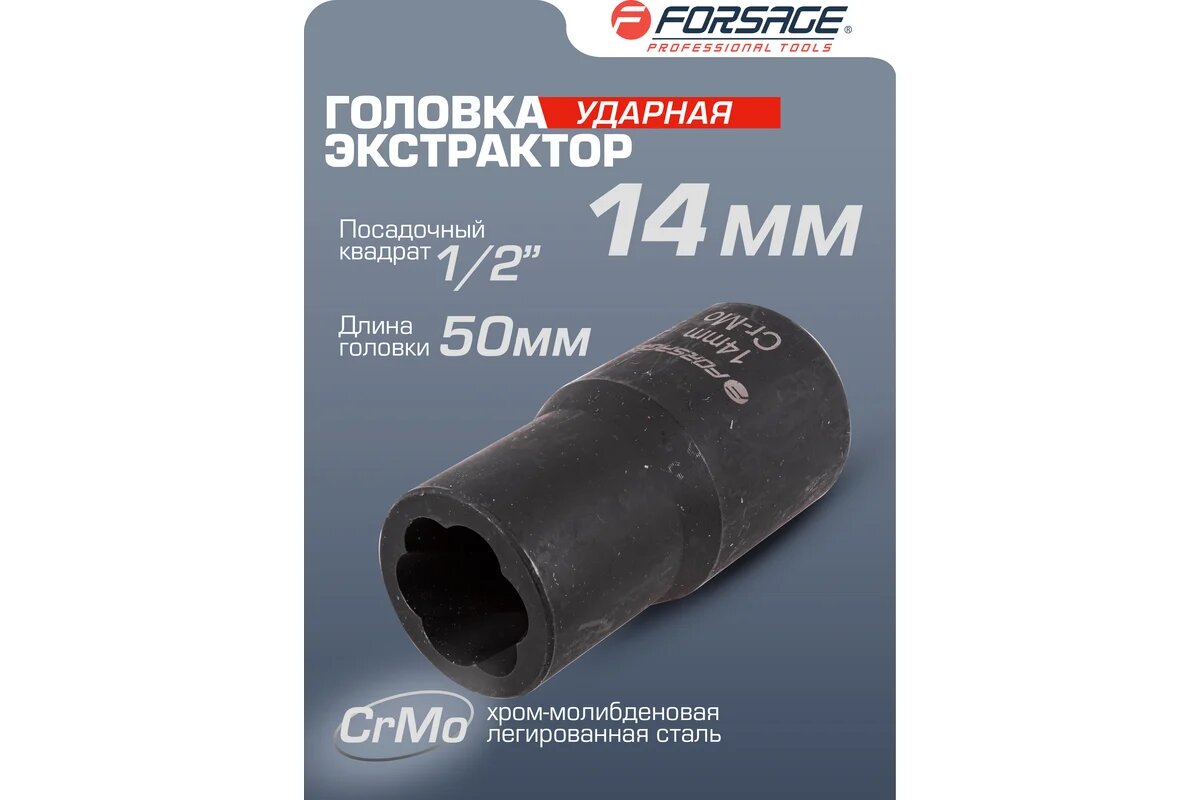 FORSAGE FORSAGE Головка торцевая экстрактор для поврежденных болтовгаек, 14 мм х 50 мм, 12 inch FORSAGE F90614