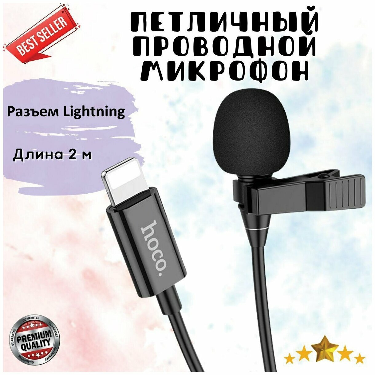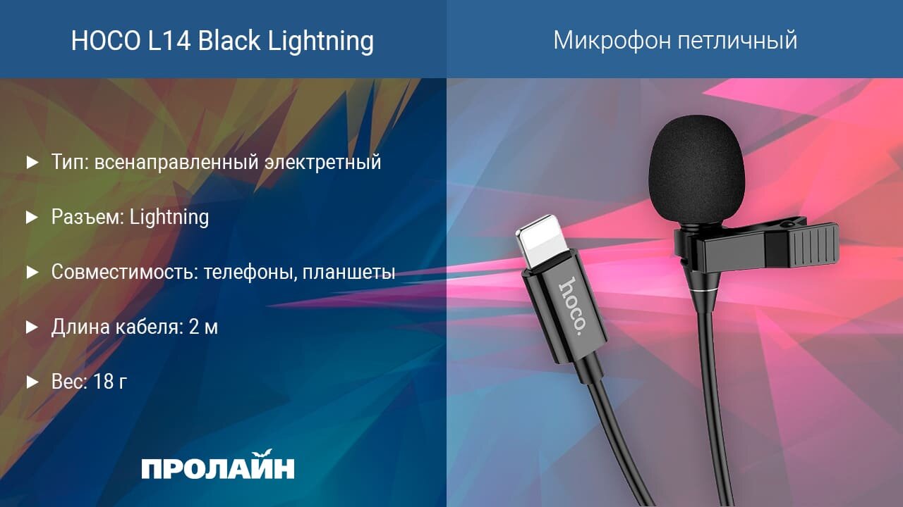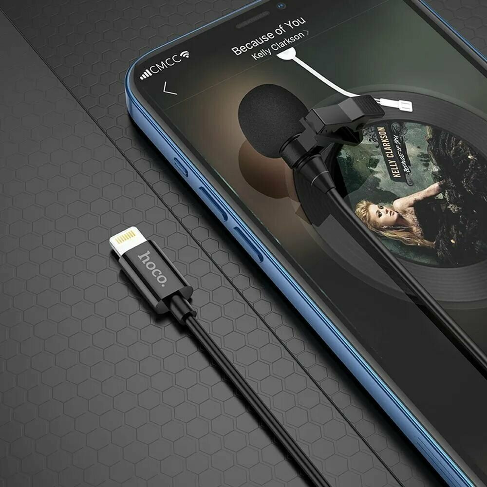 Микрофон петличный HOCO, L14, Lavalier, пластик, кабель 8 pin, цвет: чёрный