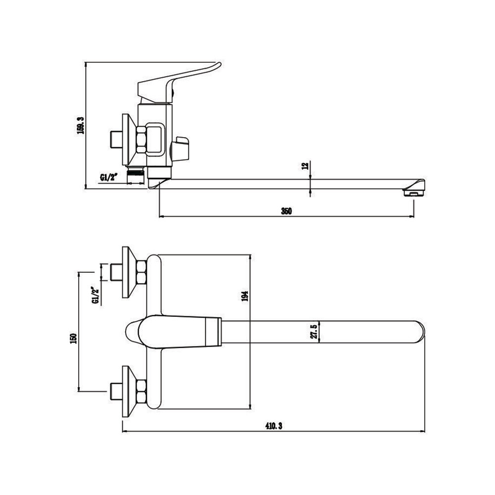 Смеситель для ванны Olive's Plaza 16221PL с длинным изливом
