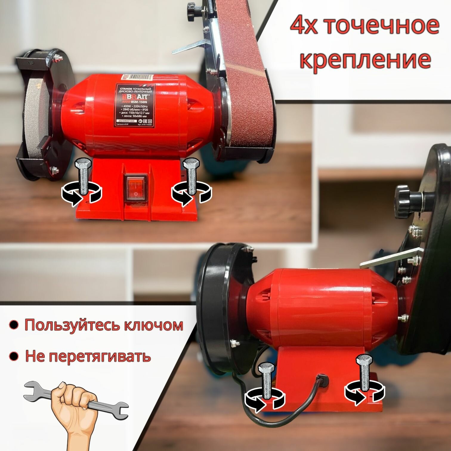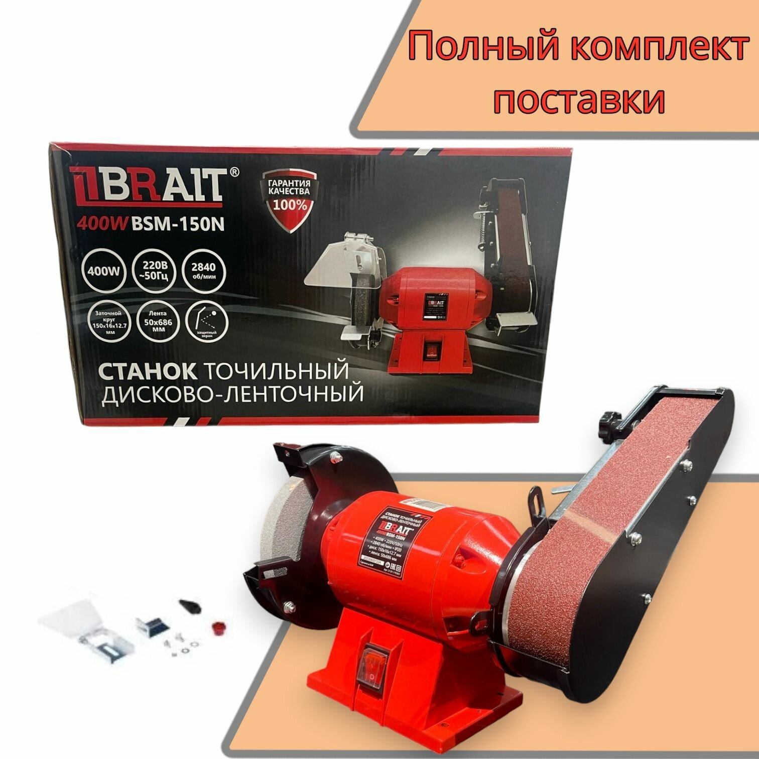 Точильный станок Brait BSM-150N дисково-ленточный, 150мм, лента 686х50мм, 400Вт