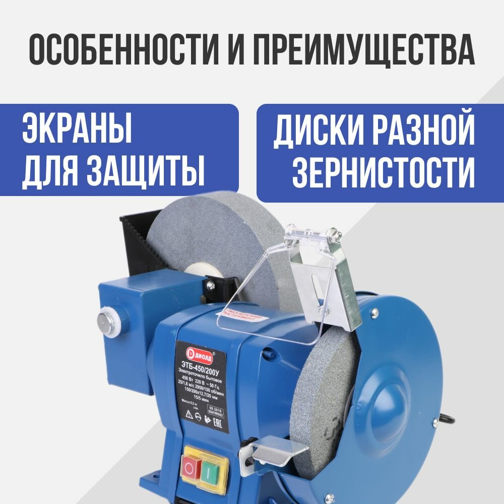 Электроточило диолд ЭТБ-450/200 У / точильный станок, 450 Вт, 2950 об/мин