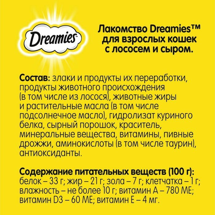 Купить DREAMIES Лакомые подушечки сыр,лосось д/кошек 60г