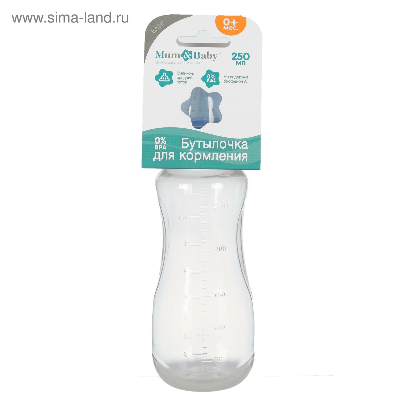 Купить Бутылочка для кормления, классическое горло, приталенная, 250 мл., от 3 мес., цвет синий