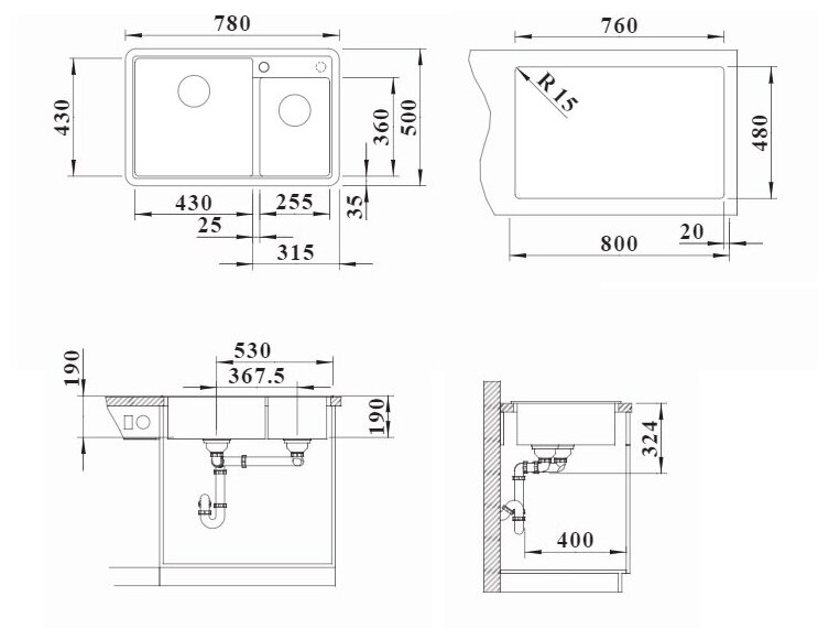 | Ширина мойки | 78 см |