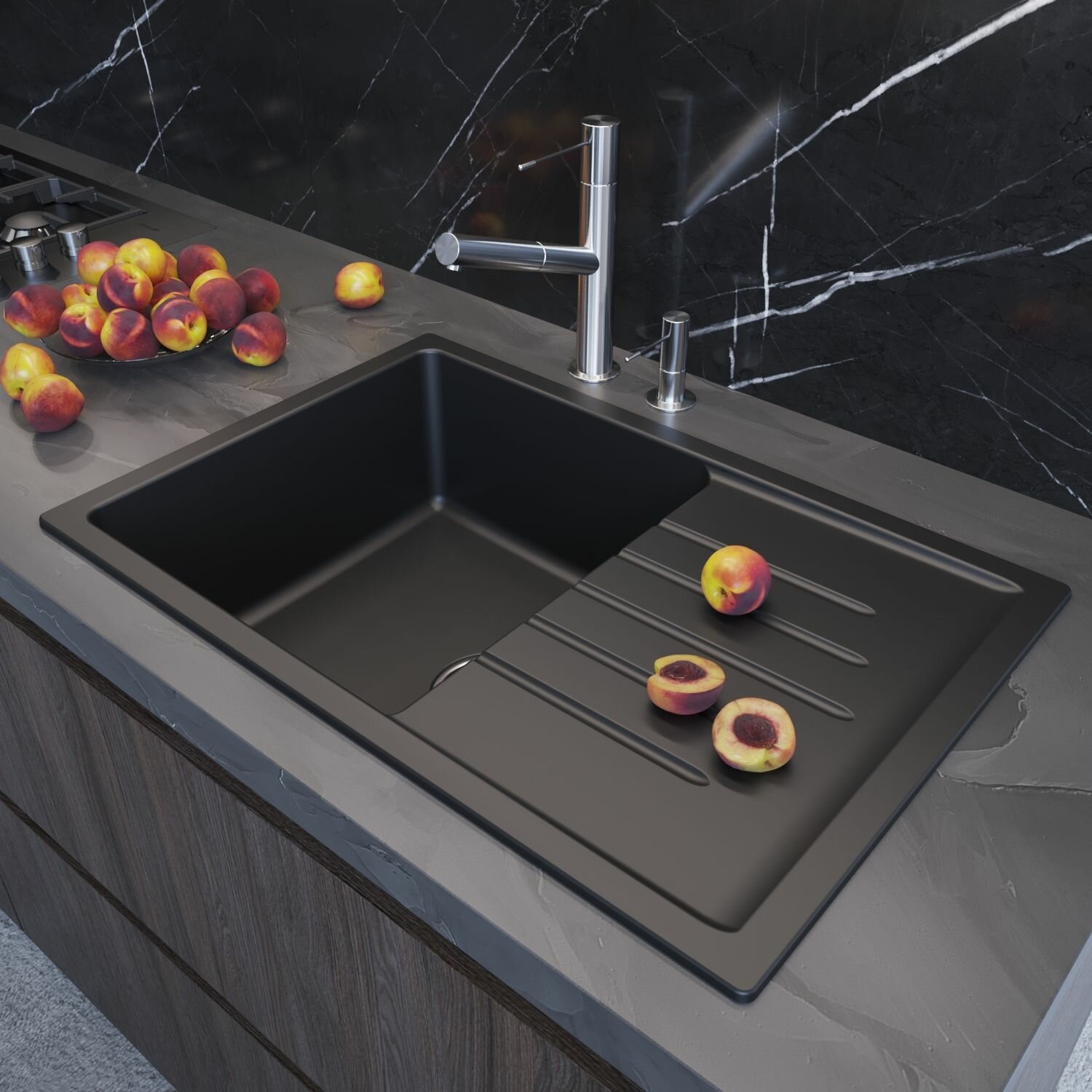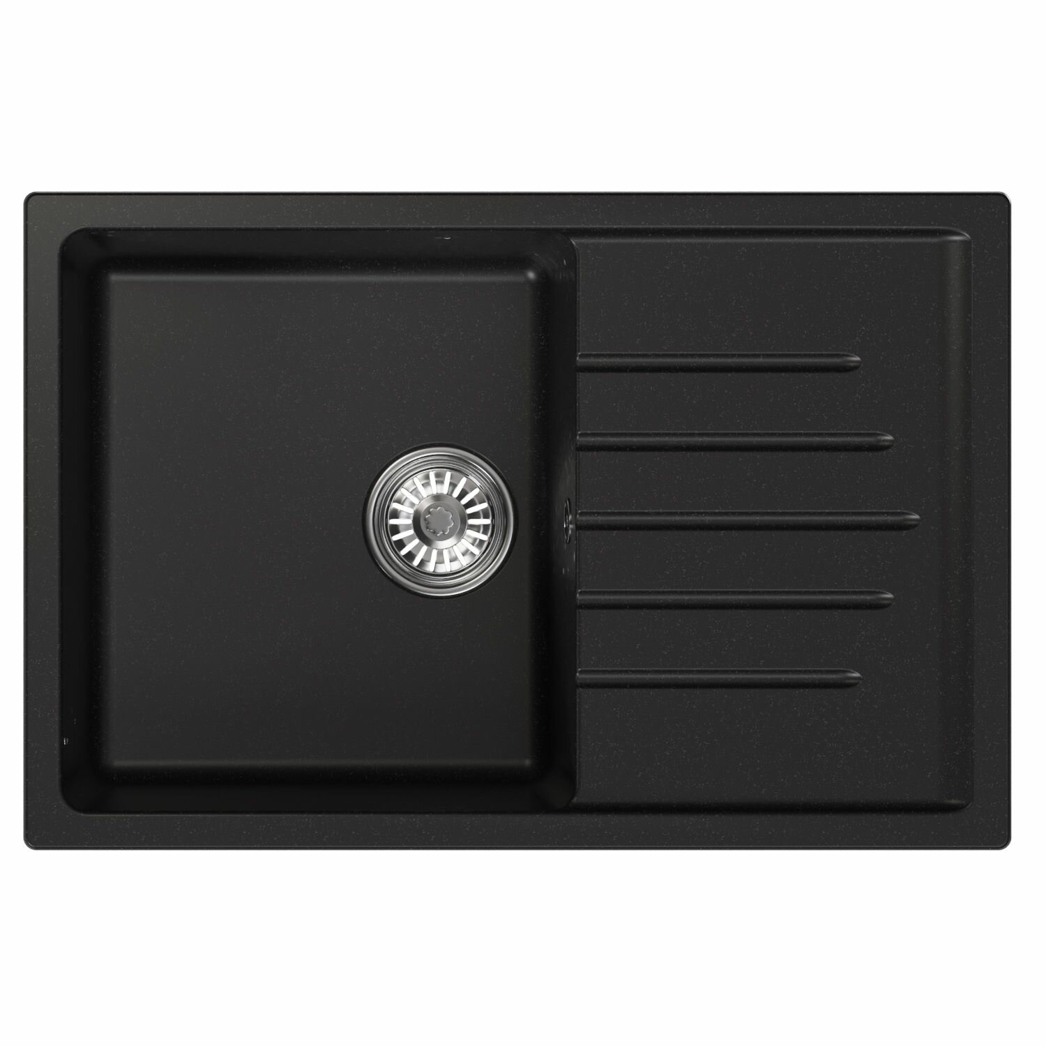 Купить Мойка для кухни из искусственного мрамора 75х50, прямоугольная, с крылом, с сифоном, MIXLINE ML-GM 19, ультра черная
