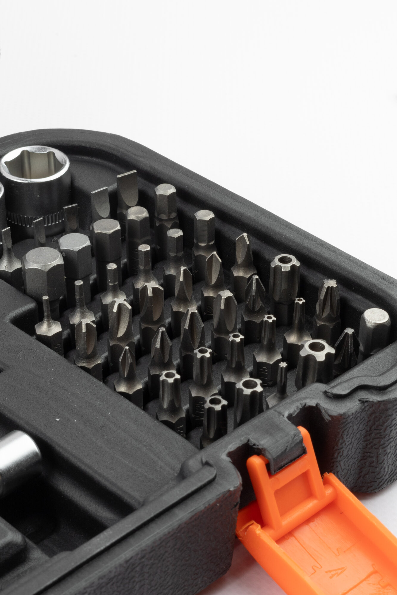 | Минусы: | биты и головки не держатся на своих местах . товар пришёл весь рассыпаный. замки чехла не держат , от слова совсем . |