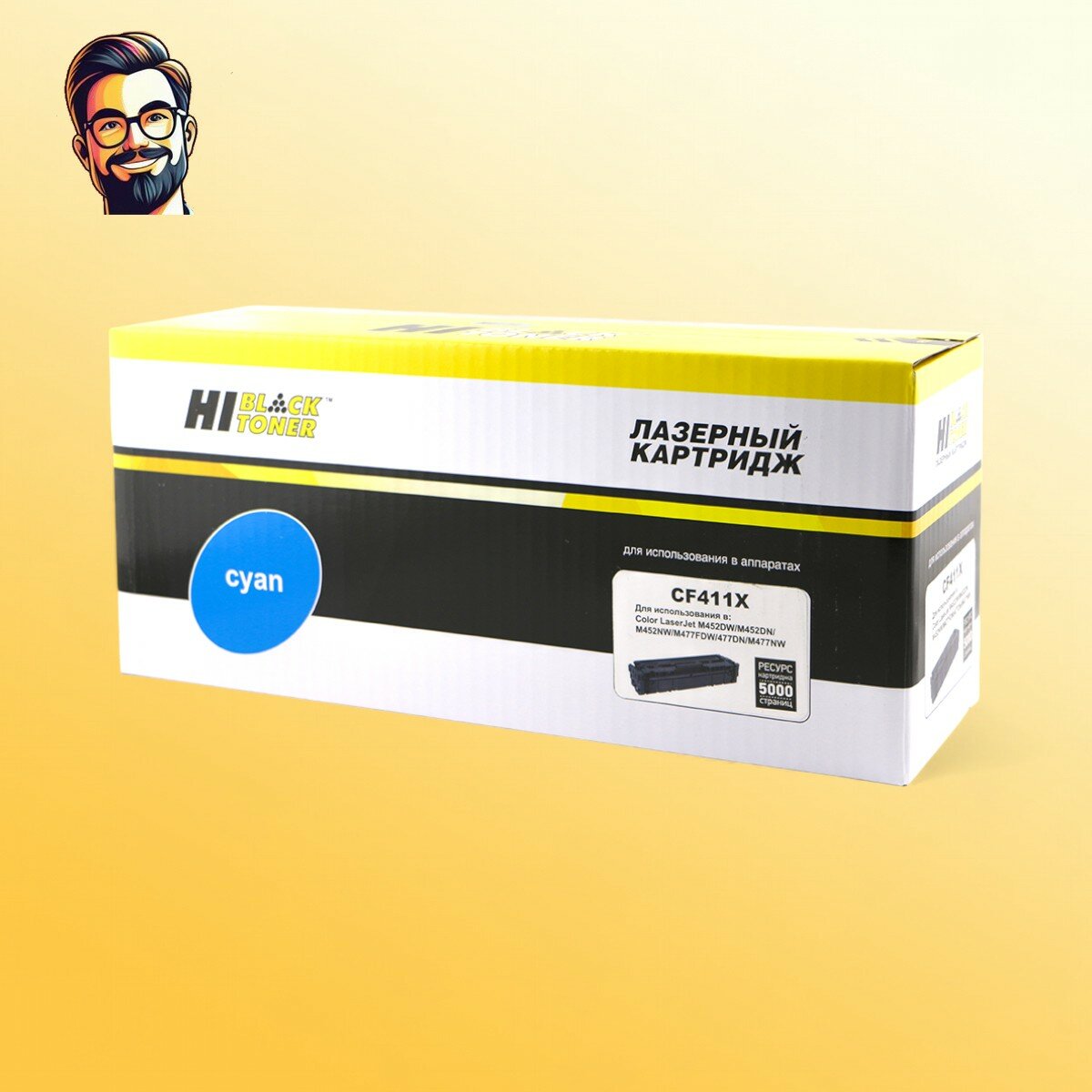 Картридж Hi-Black CF411X для HP CLJ M452DW/DN/NW/M477FDW/477DN/477FNW, C, 5K, голубой, 5000 страниц