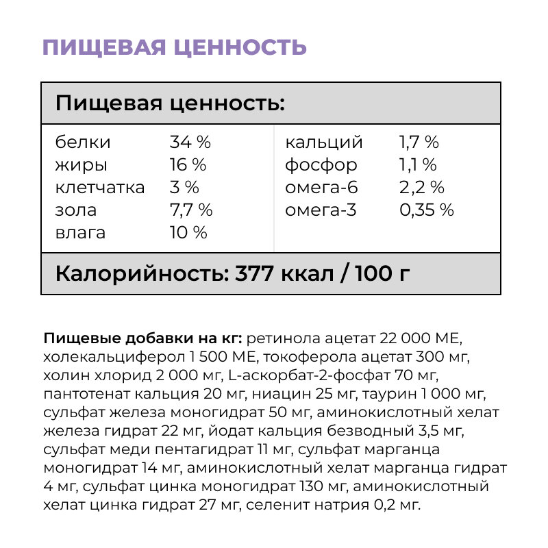 | Возраст животного | взрослые (1-6 лет) / пожилые (7+) |