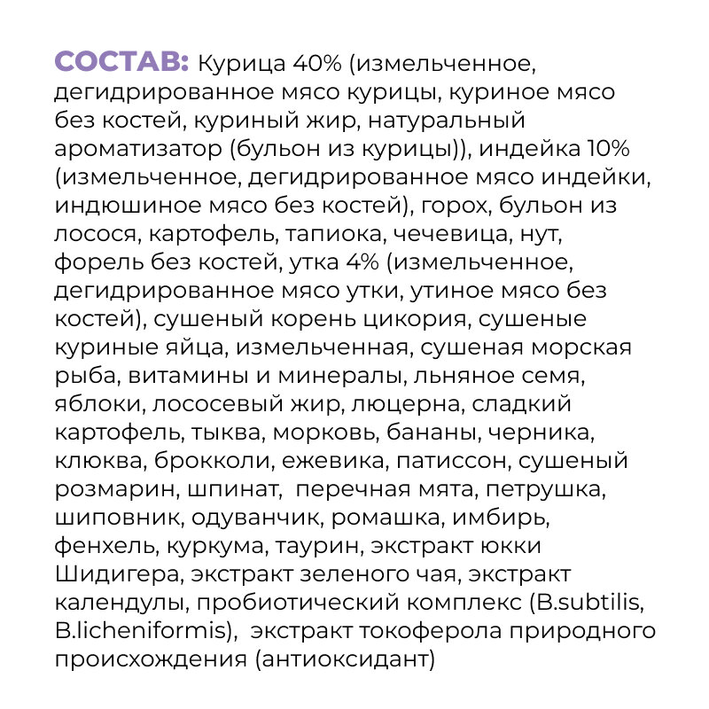 | Вкус | индейка / куриная грудка / курица / лосось / утка |