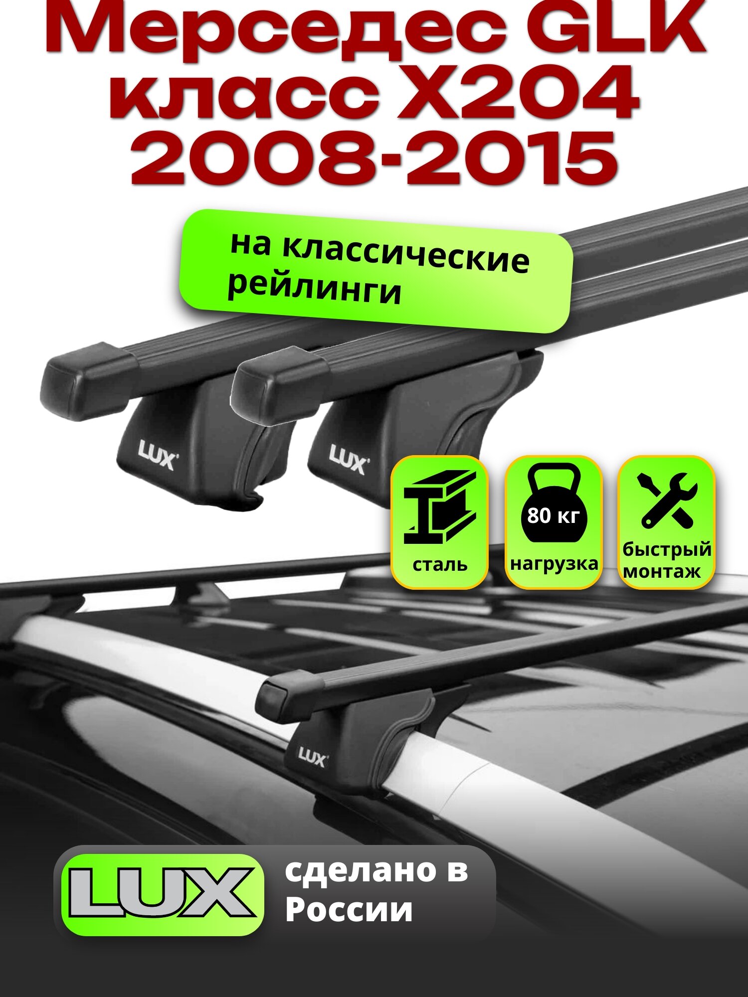 Багажник на крышу Мерседес GLK класс X204 2008-2015 на рейлинги, черный, LUX классик интересное: