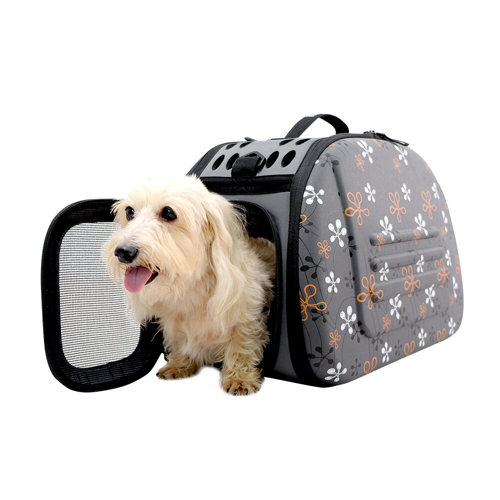 Cумка-переноска для собак и кошек Ibiyaya PTY, размер 46х32х30см., серая в цветочек