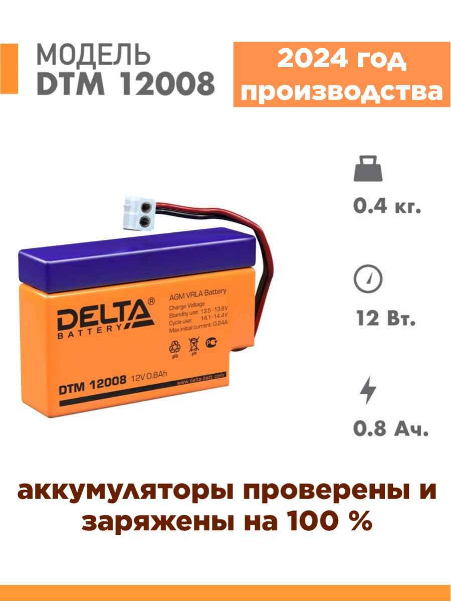 Аккумулятор Delta 12В 0,8 Ач (Dtm 12008) Переносн.приборы/Системы С Резервн.пит. Delta арт. DTM12008