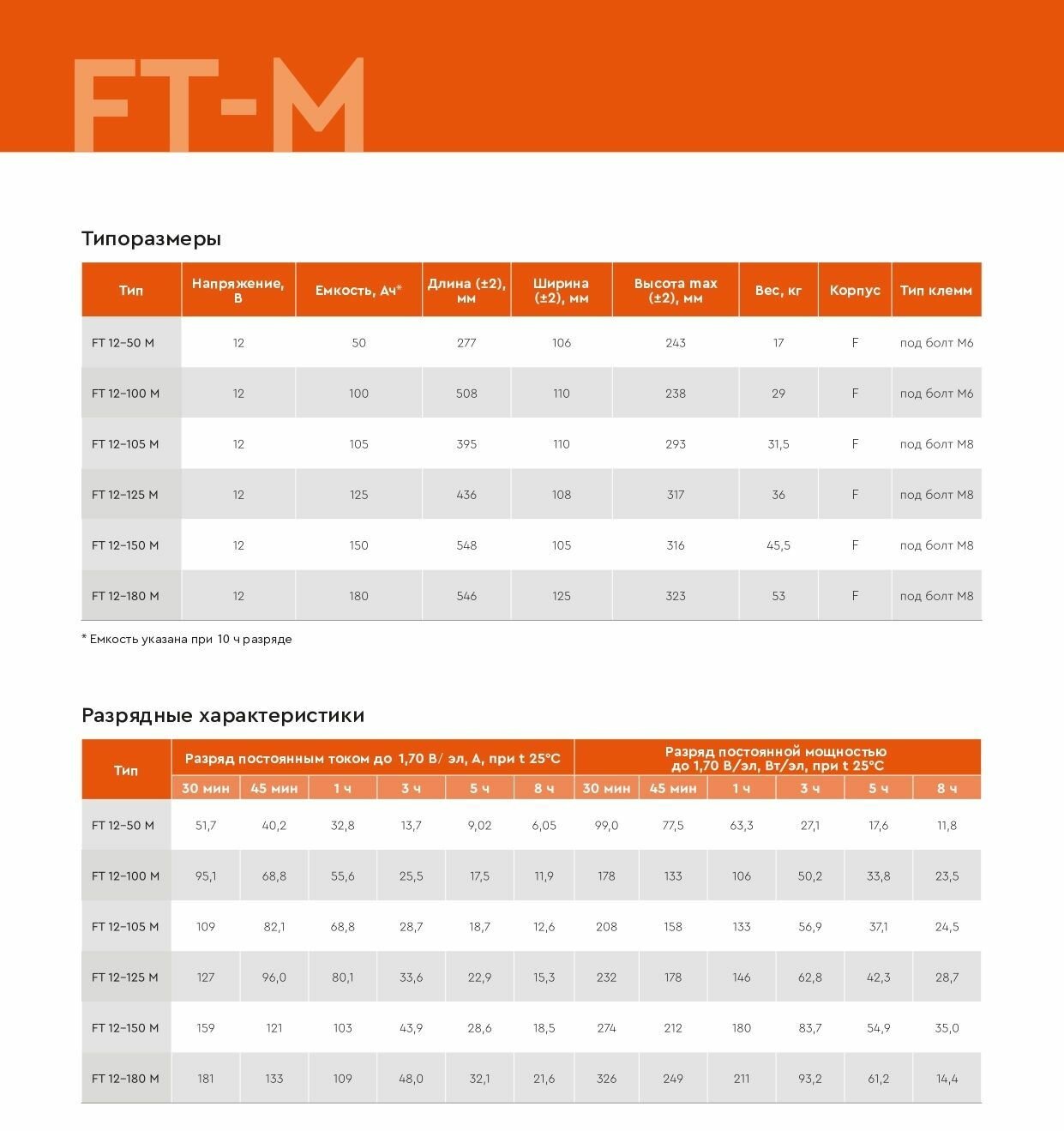 Аккумулятор для ИБП Delta FT 12-105 M (12В 105 Ач) AGM