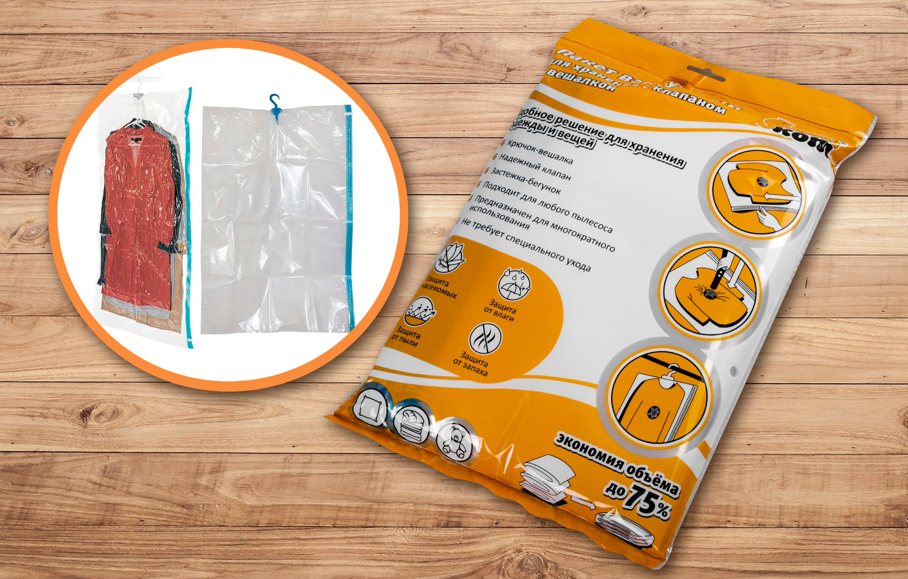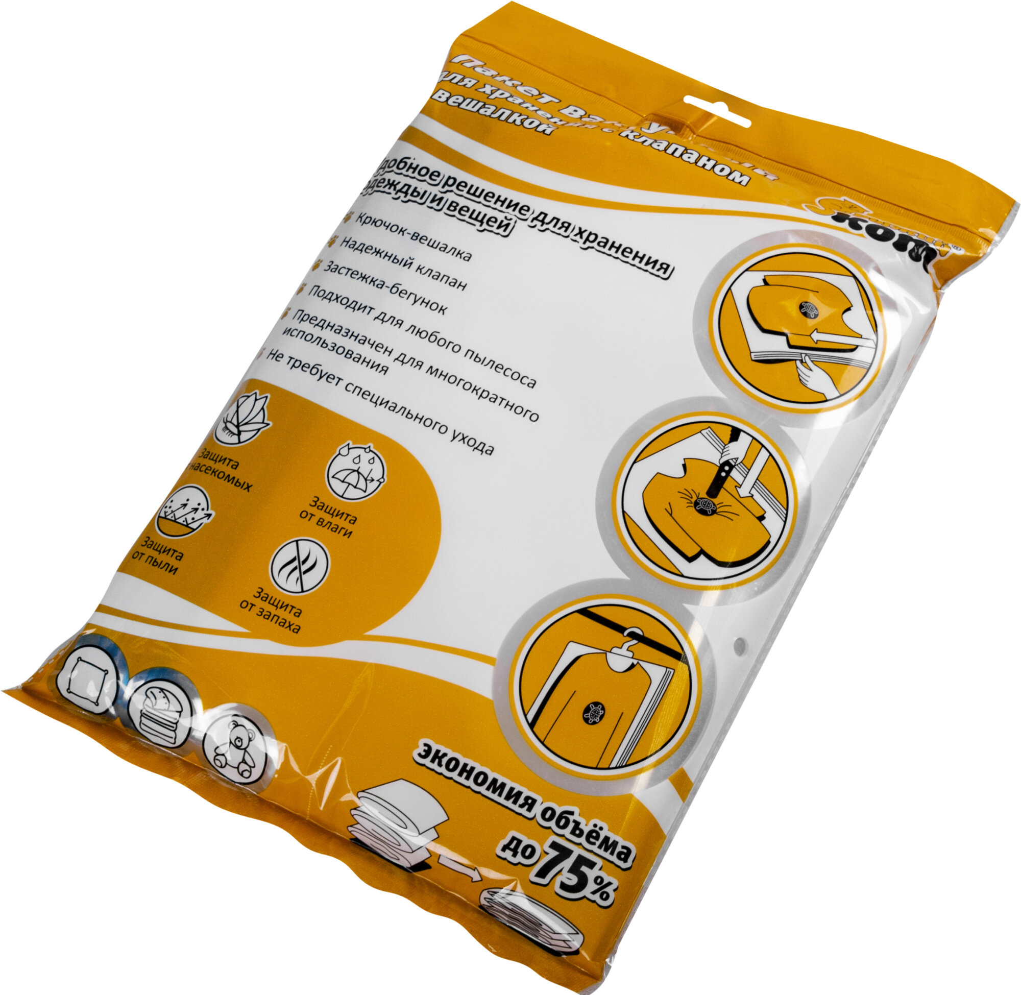 Вакуумный пакет 70х105 см с клапаном для пылесоса и вешалкой VB5 интересное: