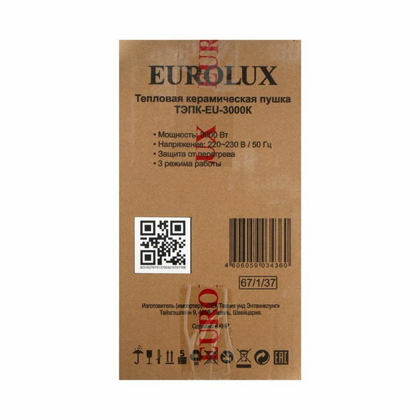 Тепловая пушка электрическая Eurolux ТЭПК-EU-3000K, 67/1/37
