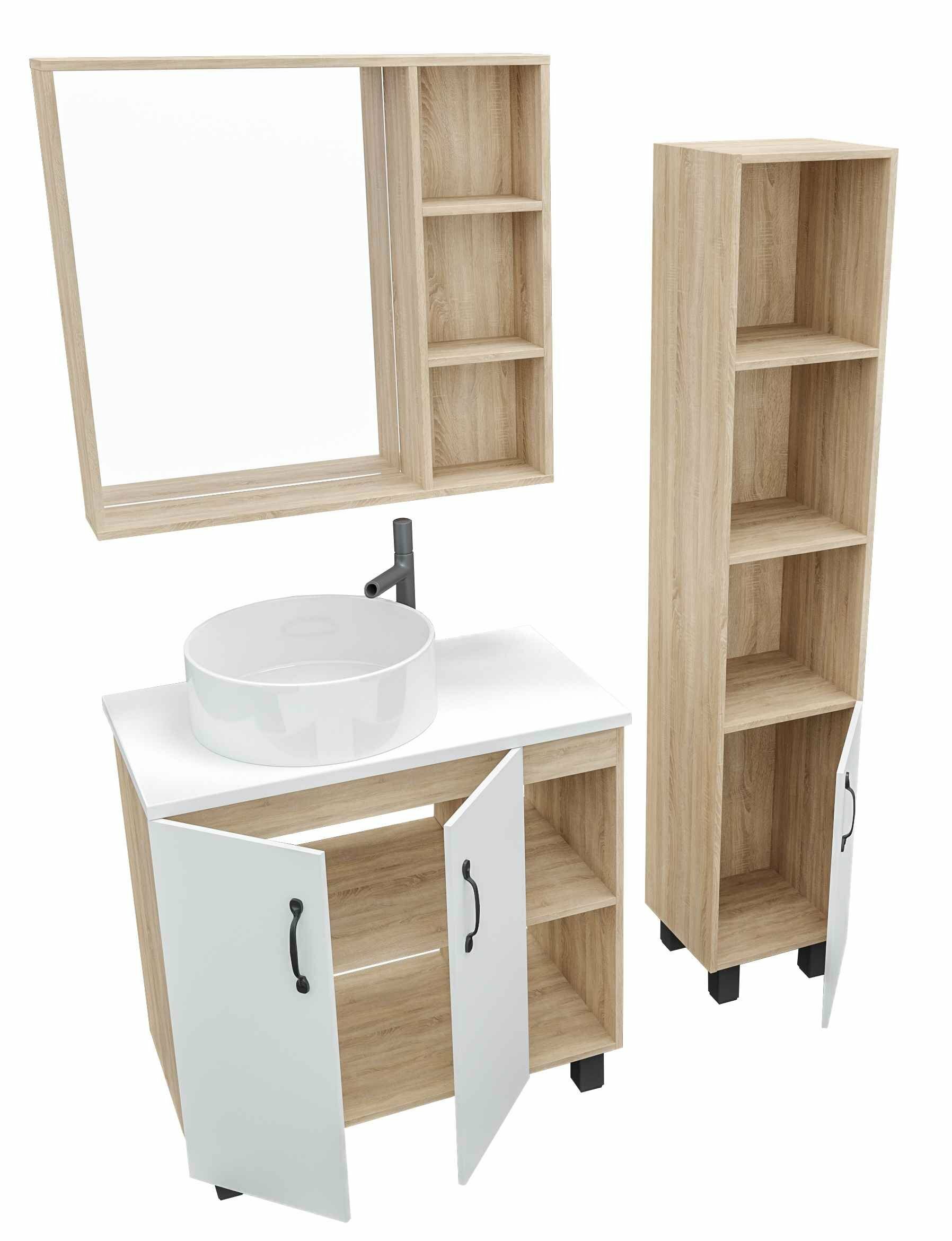 Купить Тумба под раковину Grossman Флай 80 108001 Дуб сонома Белая