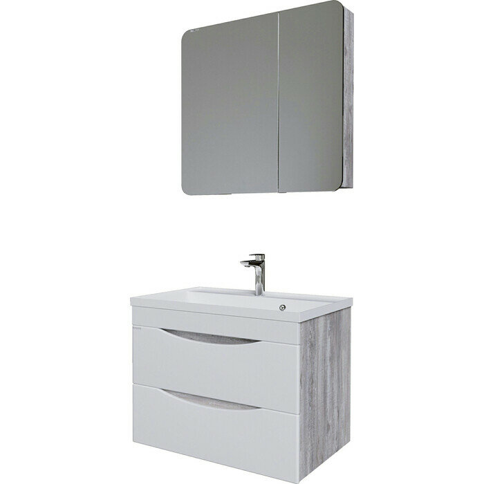 Тумба с раковиной Grossman Талис 80 бетон пайн, белый глянец
