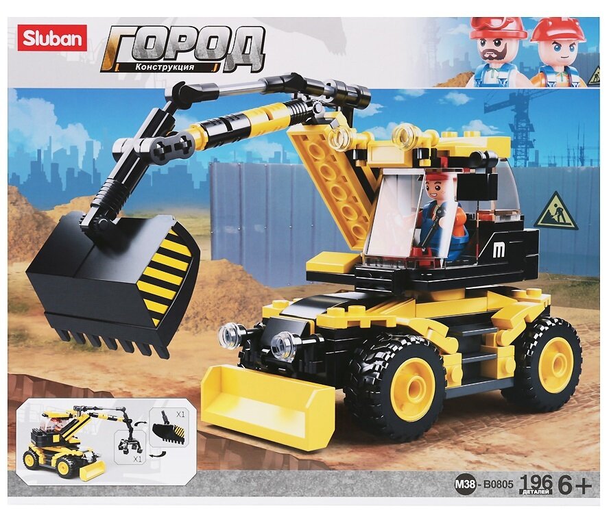 Купить Конструктор блочный Sluban Экскаватор 196 деталей