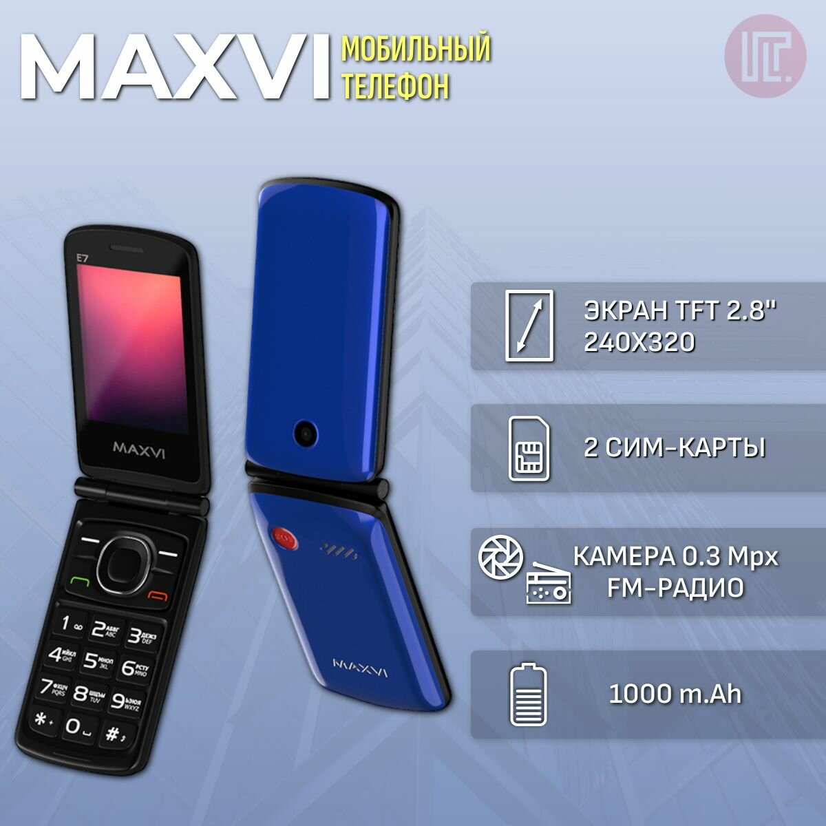 Мобильный телефон раскладушка, Maxvi E7, Синий