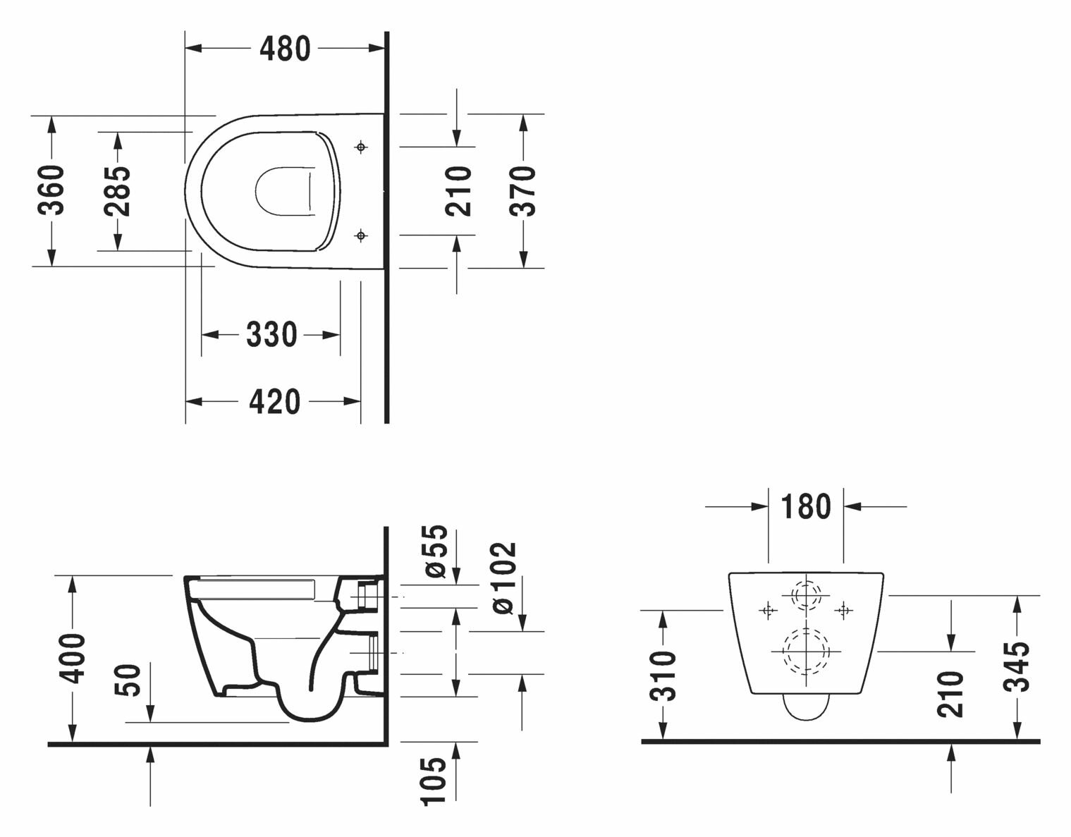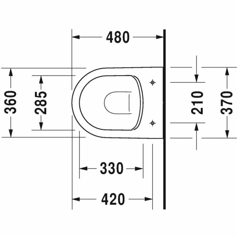 Подвесной унитаз Duravit ME by Starck 37х48см, арт. 2530090000, безободковый, без сиденья, с вертикальным смывом