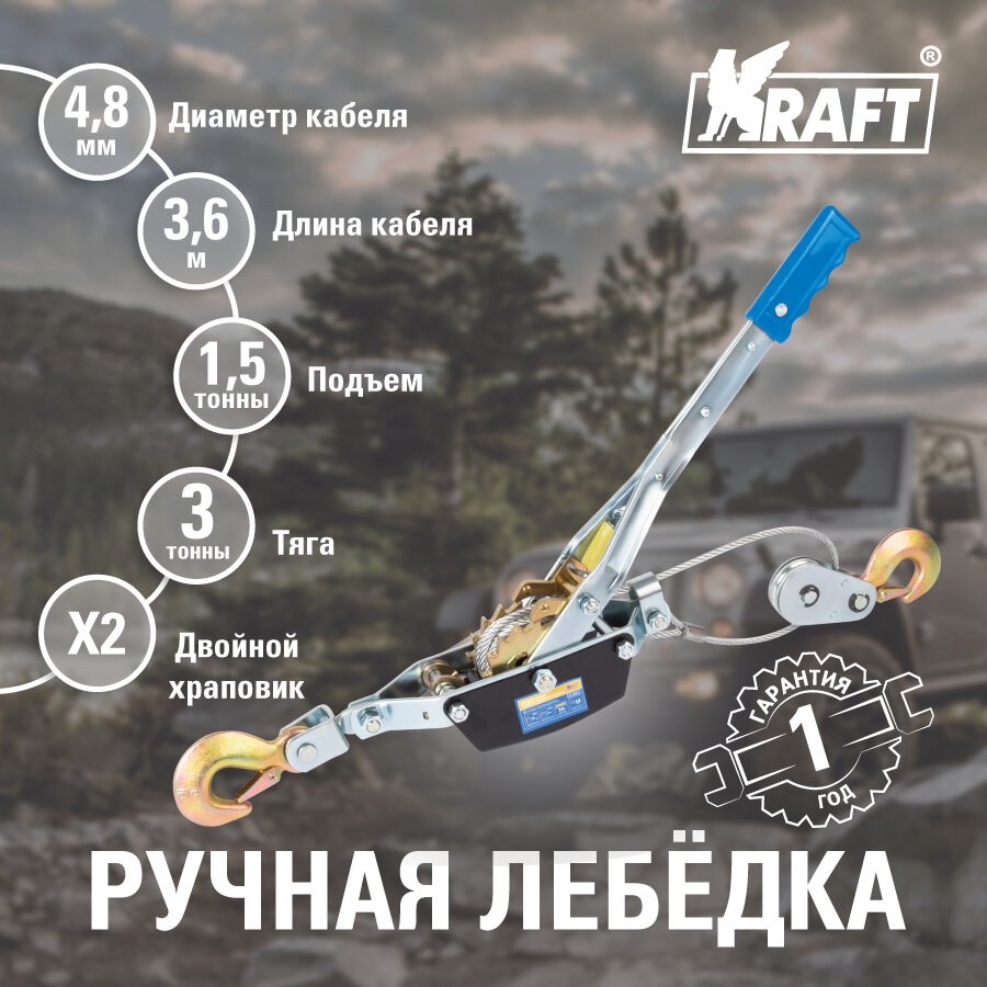 KRAFT KT 705012 Лебедка ручная с двойным храповым механизмом 3Т KRAFT KT 705012