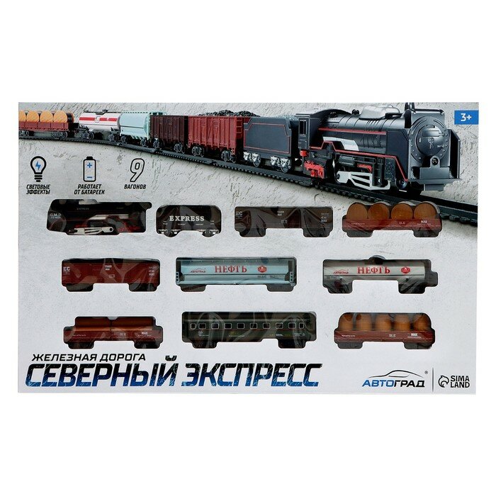 Купить Железная дорога «Товарный поезд», с 9 вагонами, работает от батареек, свет, 2612235