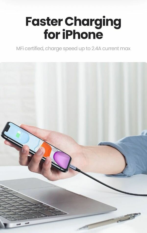 Кабель UGREEN для зарядки и передачи данных USB A 2.0 MFI, 1.5 м (60162)