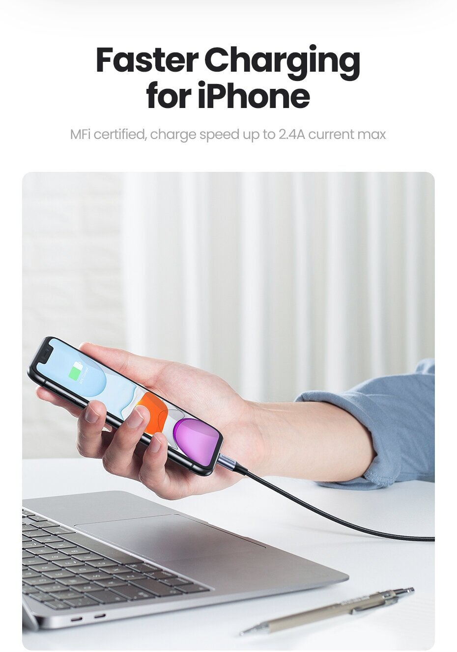 Кабель UGREEN для зарядки и передачи данных USB A 2.0 MFI, 1,5 м (60162)